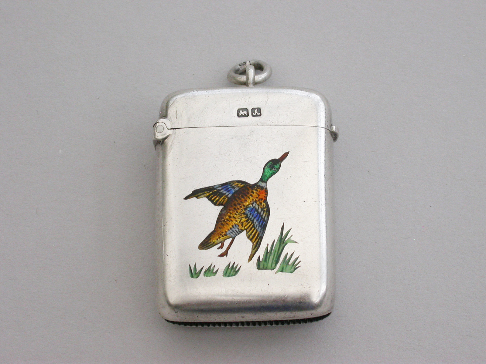 Edwardian Silver & Enamel Flying Mallard Vesta Case by John Millward Banks, Chester, 1901