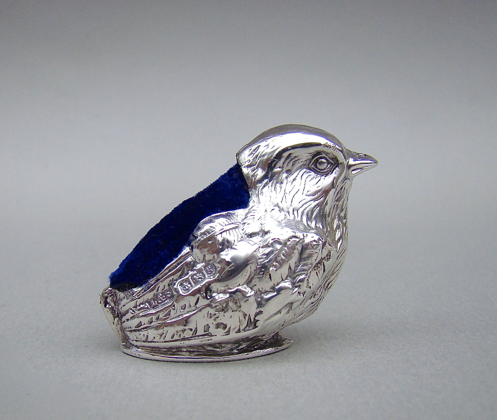 Edwardian Silver "Fledgling" Pin Cushion by Levi & Salaman, Birmingham 1906