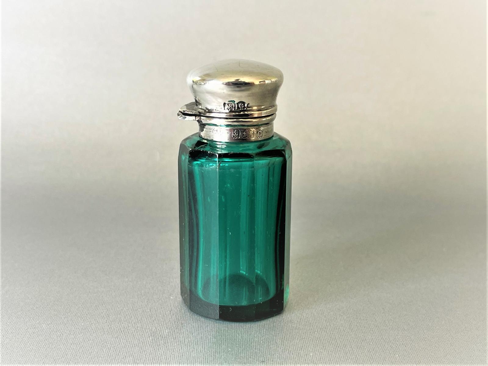 Edwardian Silver Mounted Bristol Green Scent Bottle