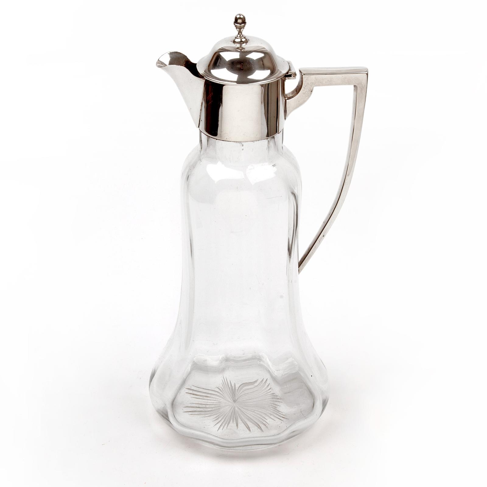 Edwardian Silver Mounted Claret Jug with an Angled Handle & Flaring Clear Glass Body (1 of 4)