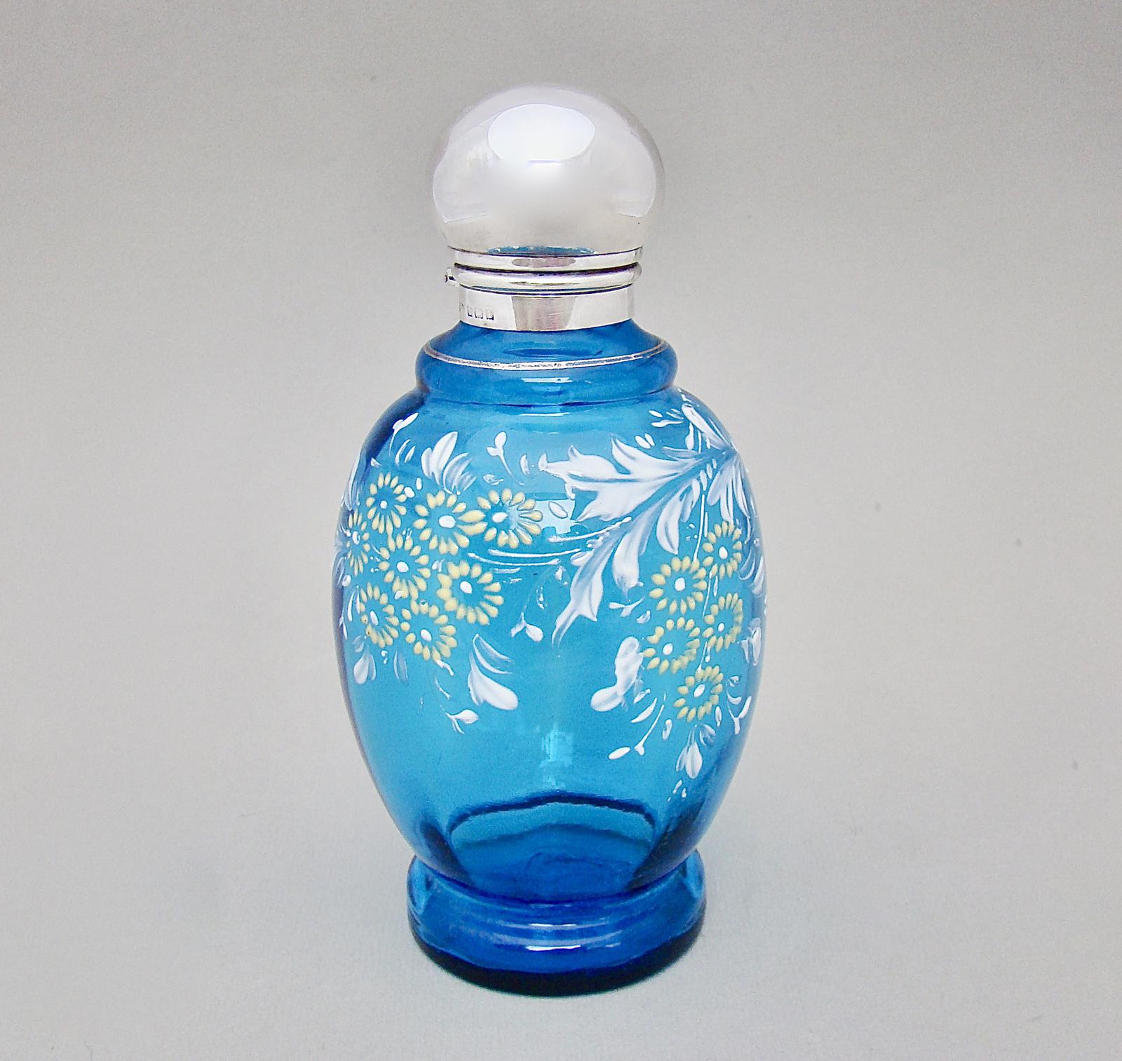 Edwardian Silver Mounted Turquoise Enamelled Glass Scent Bottle by John Grinsell Birmingham 1910