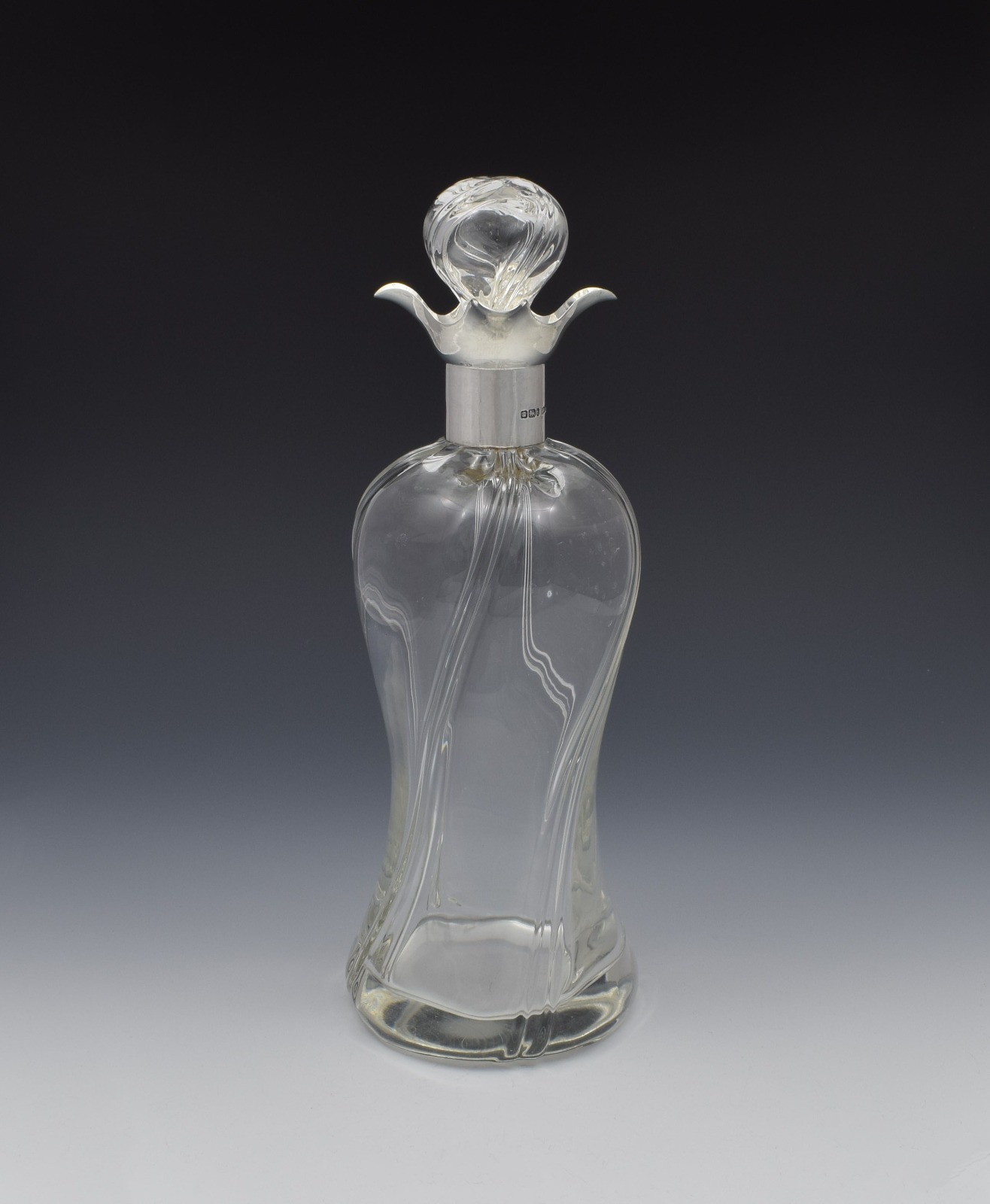 Edwardian Silver Mounted & Wrythen Glass Decanter Walker & Hall