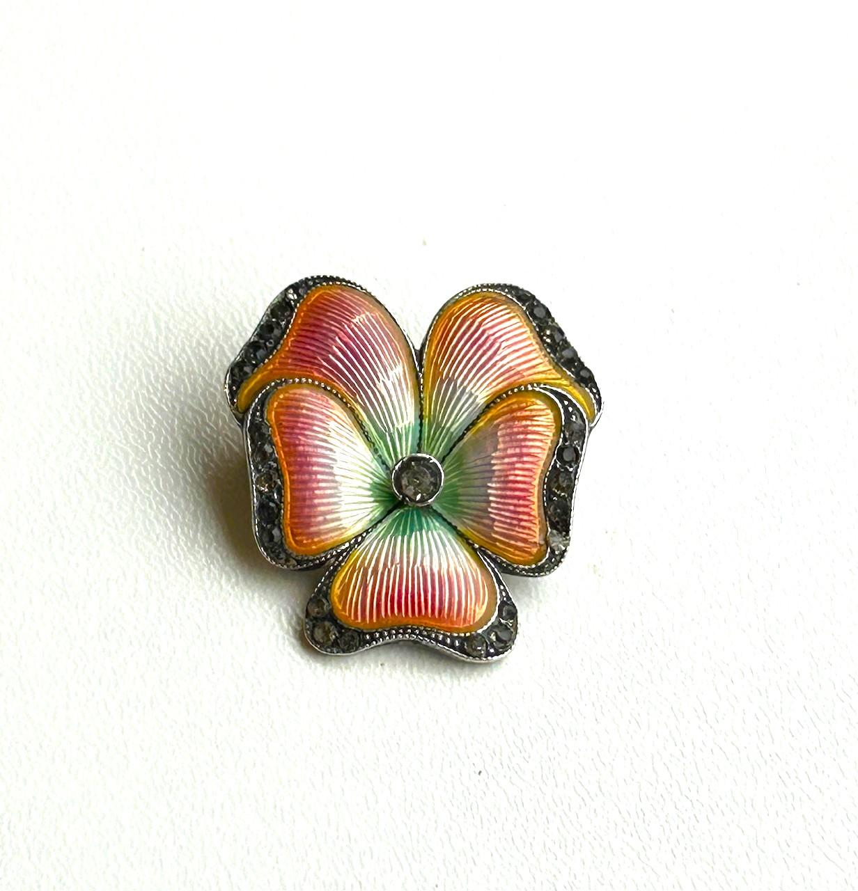 Edwardian Silver & Multi Coloured Enamel Pansy Brooch