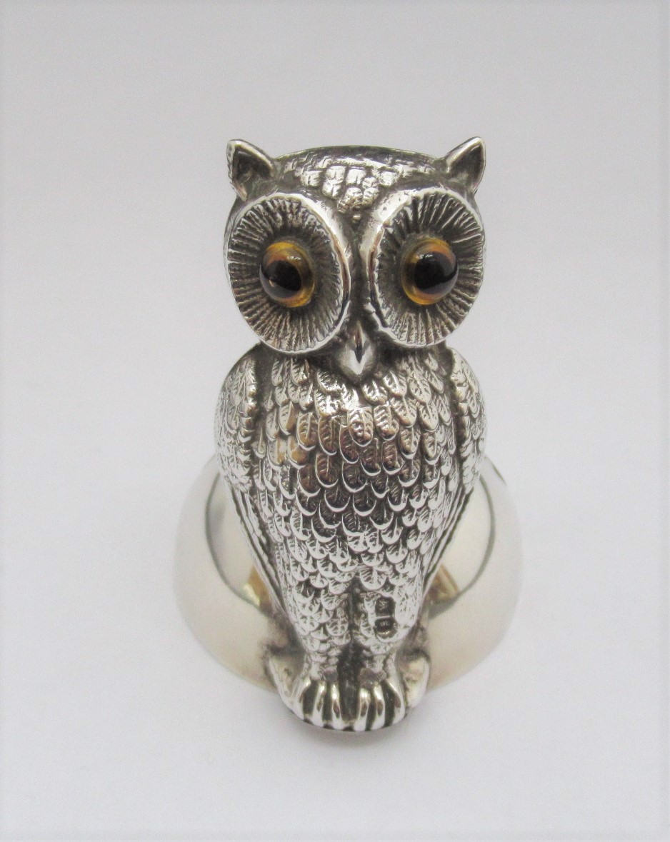 Edwardian, Silver Owl Menu/Card Holder, Britton, Gould & Co, Birmingham 1906