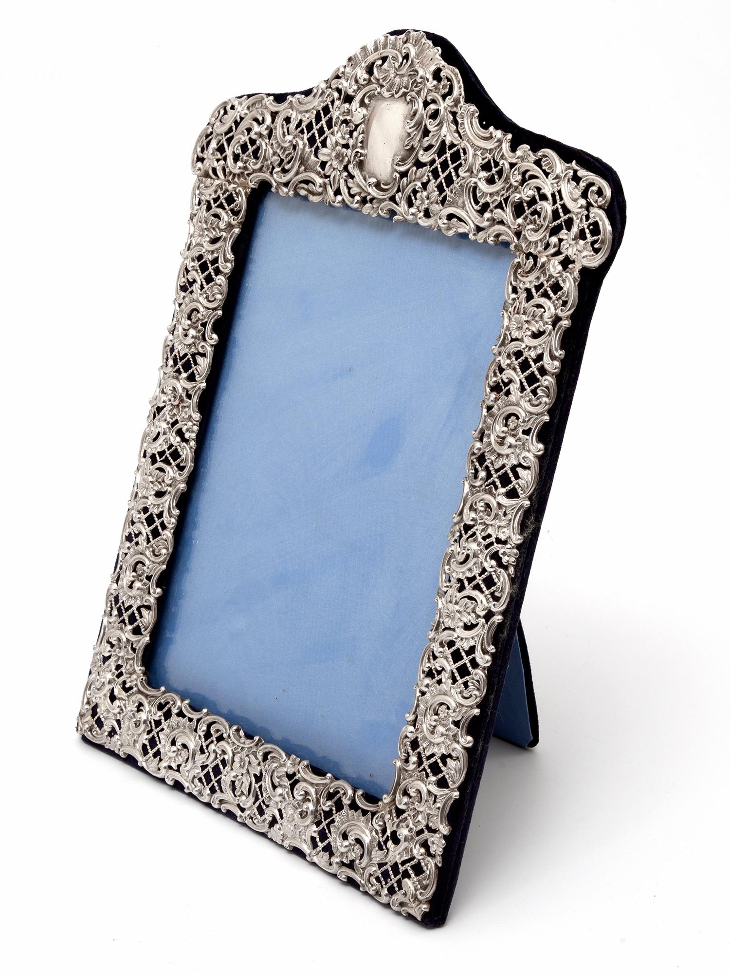 Edwardian Silver Photo Frame with a Pierced and Embossed Flower Scrolls Border