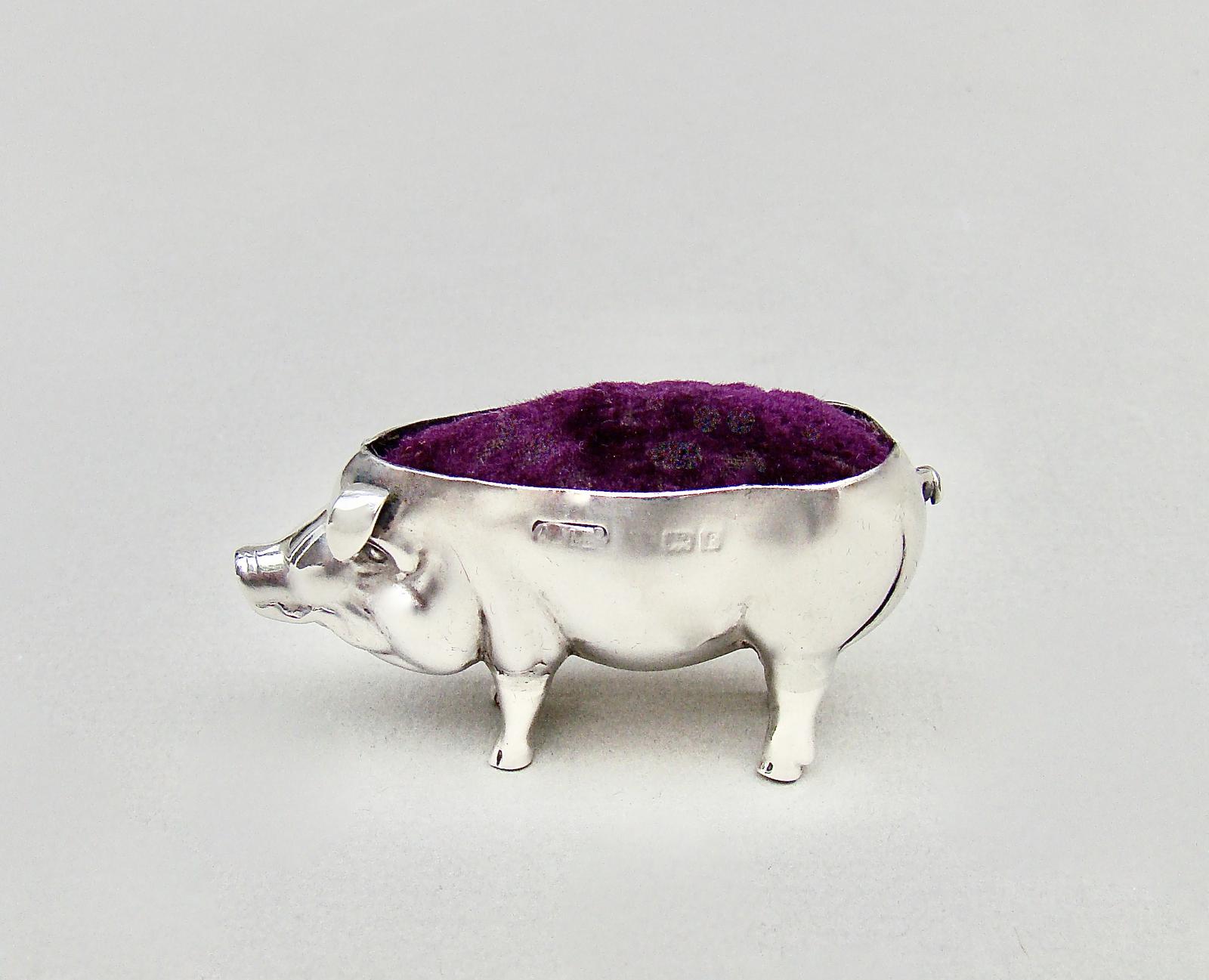 Edwardian Silver Pig Pin Cushion by Adie & Lovekin, Birmingham 1905