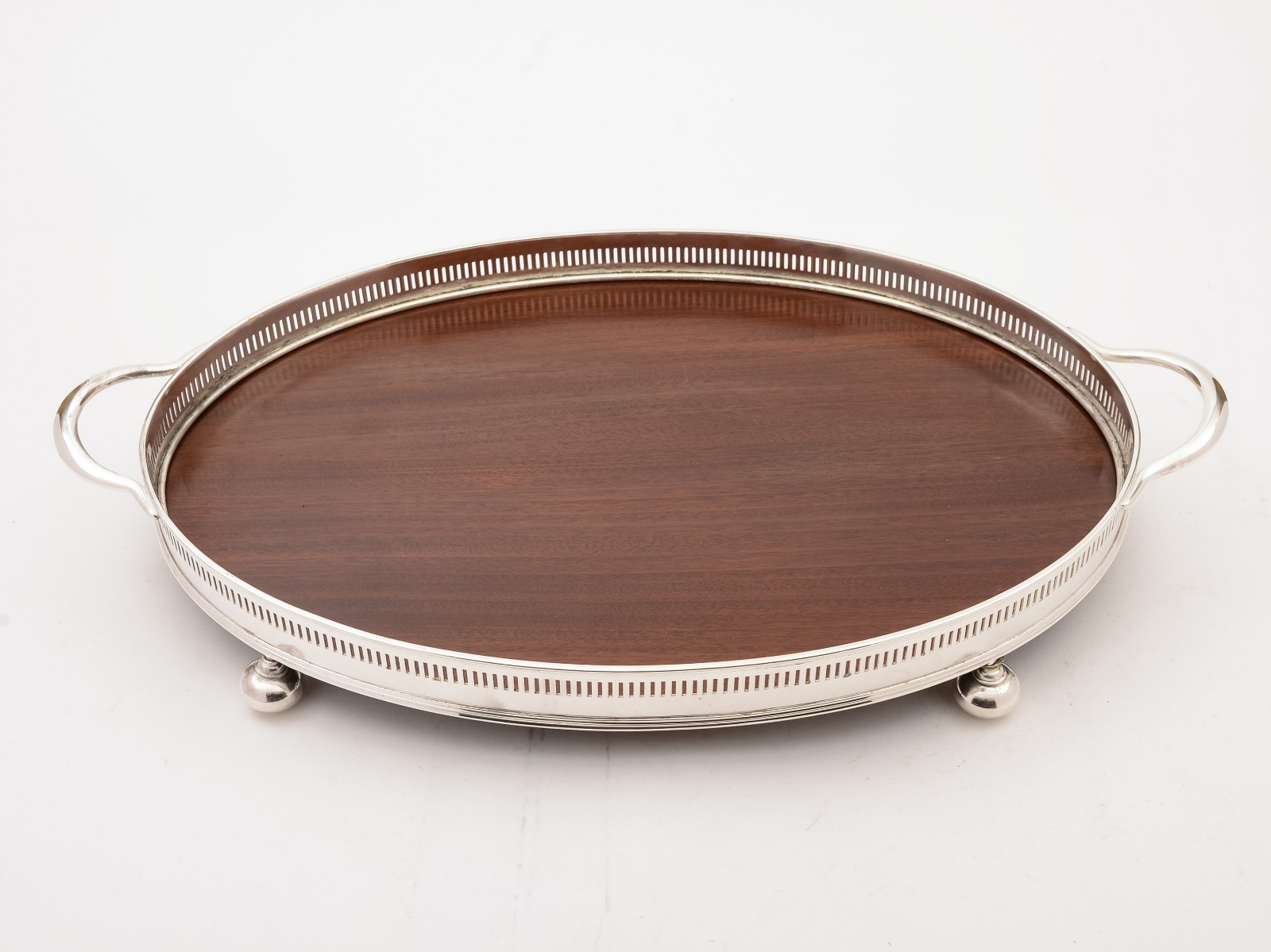 Edwardian Silver Plated and Mahogany Tray C.1905