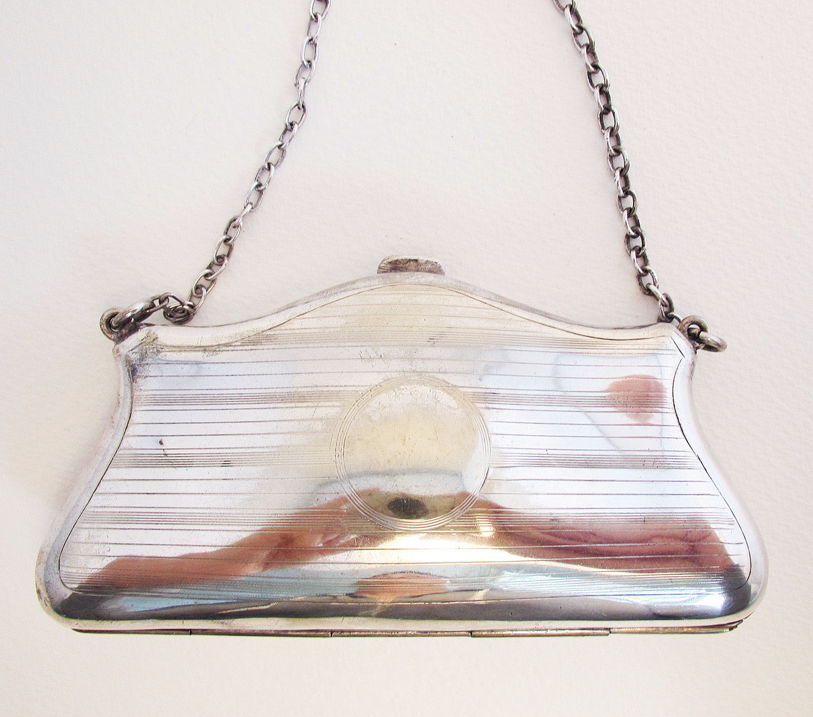 Edwardian Silver Plated Chatelaine Coin Finger Chain Purse Wallet
