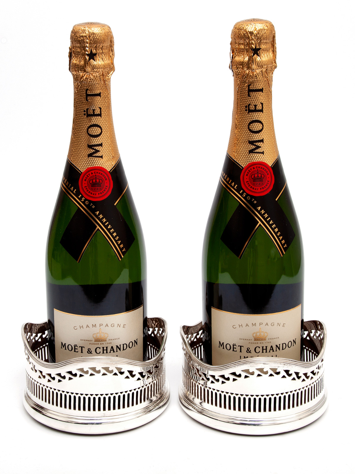 Edwardian Silver Plated Coasters with Scroll & Bar Pierced Sides