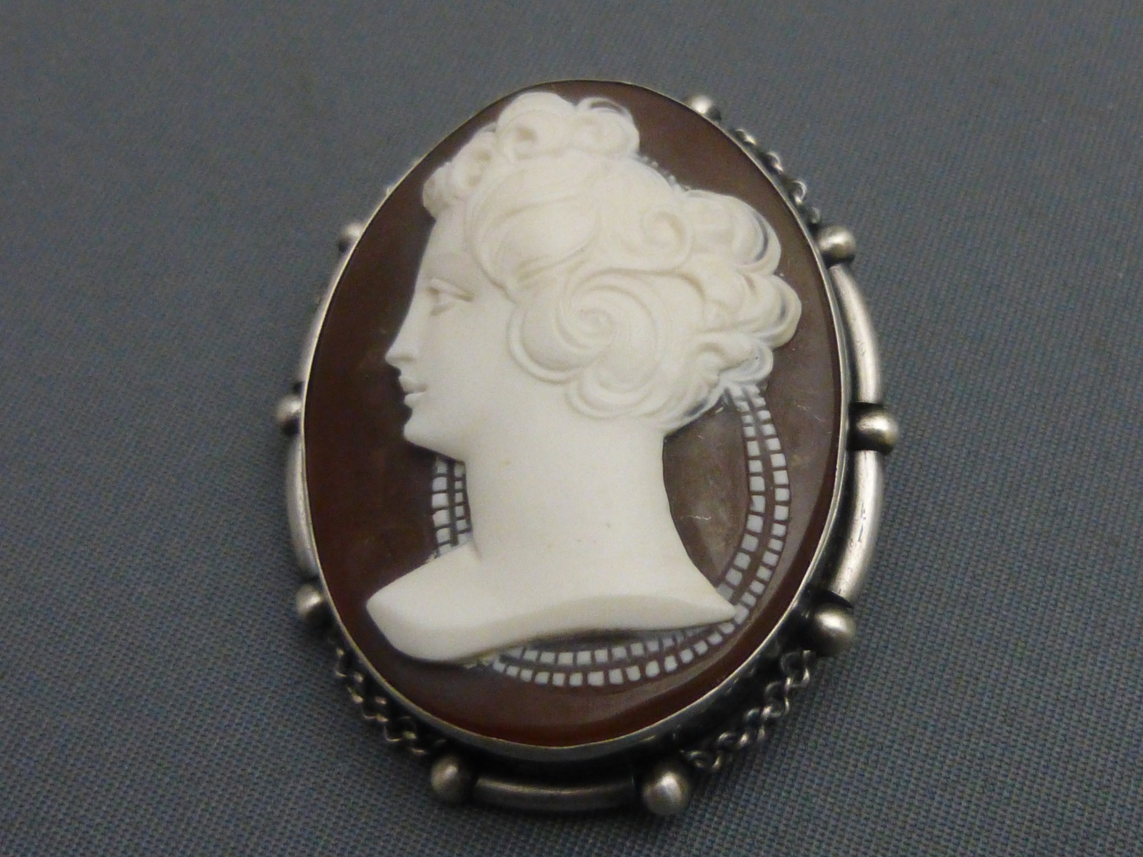Edwardian Silver Set Cameo Brooch