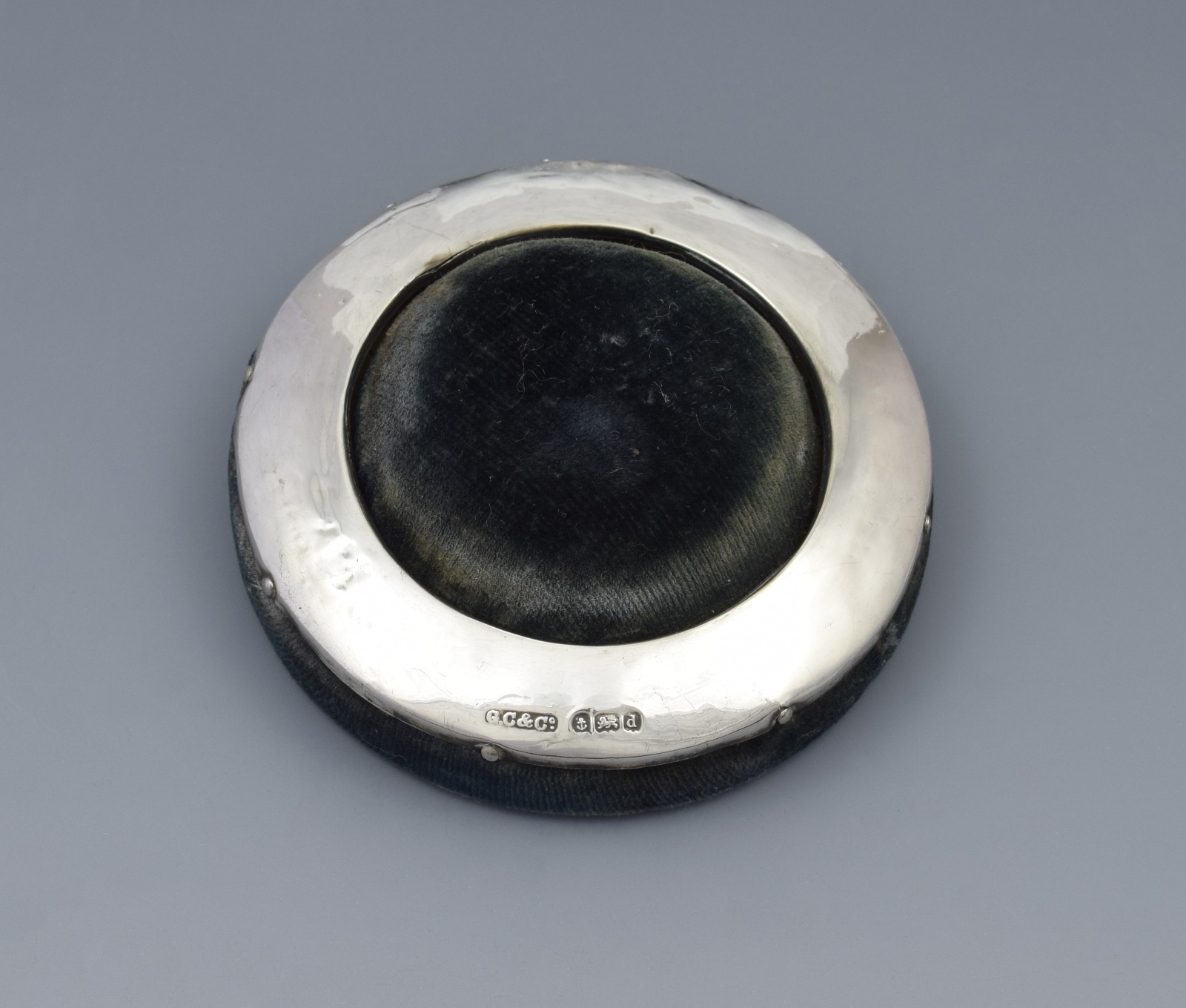 Edwardian Silver & Velvet Ring Pin Cushion / Hat Pin Stand (1 of 1)