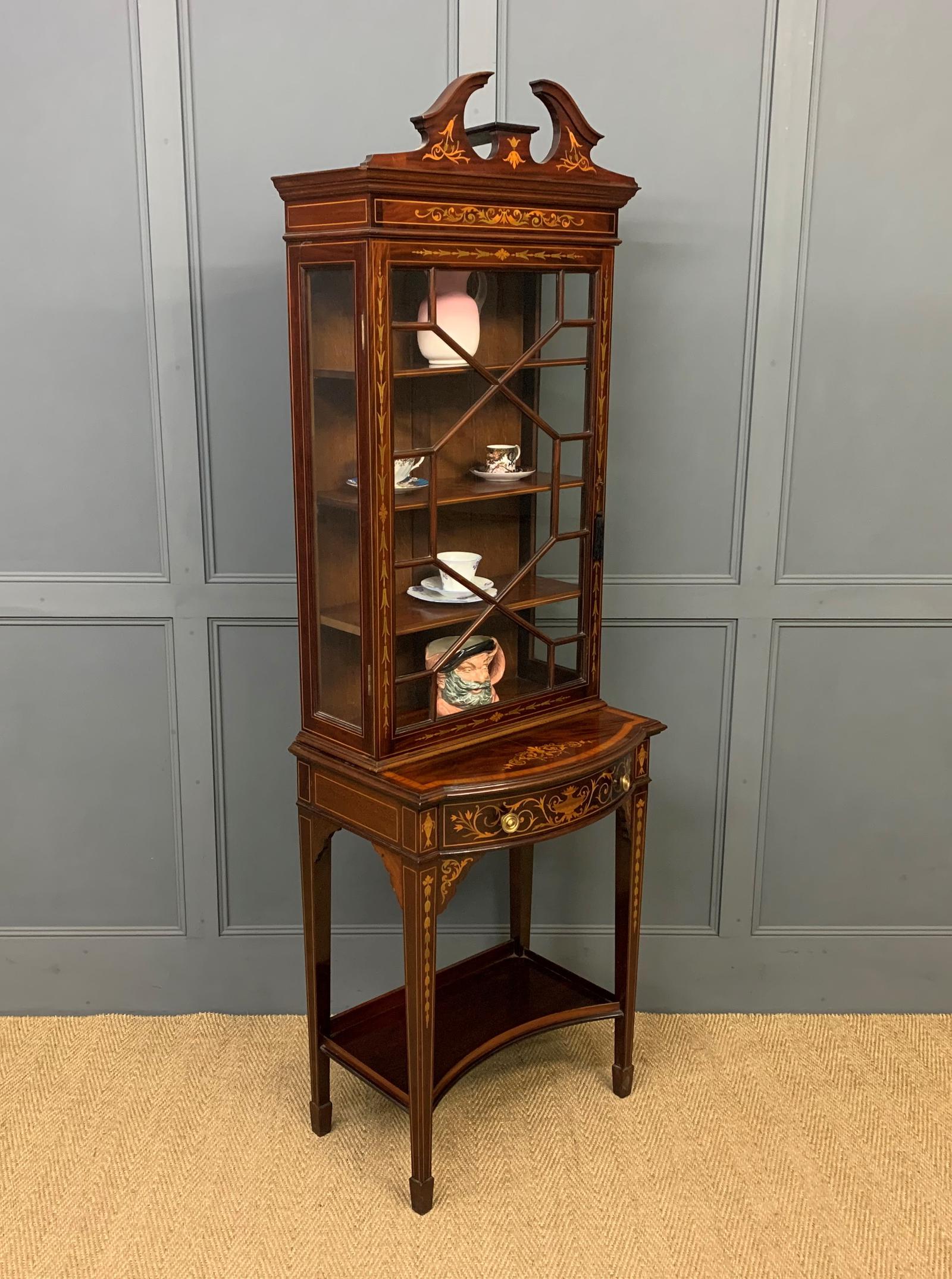 Edwardian Slender Inlaid Mahogany Display Cabinet