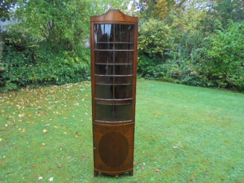 Edwardian Slim Inlaid Mahogany Corner Cabinet