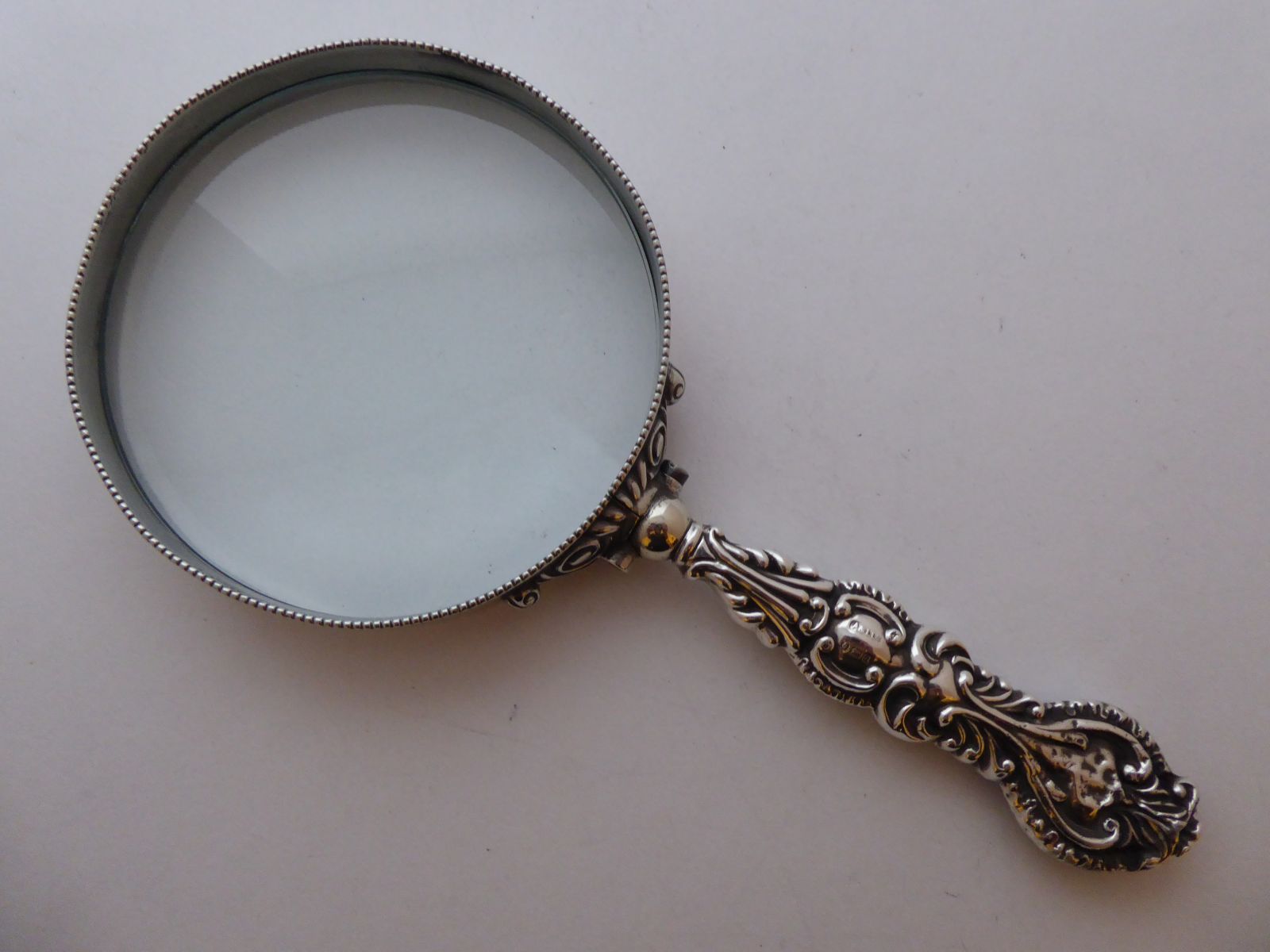 Edwardian Solid Hallmarked Silver Hand Magnifying Glass Birmingham 1900