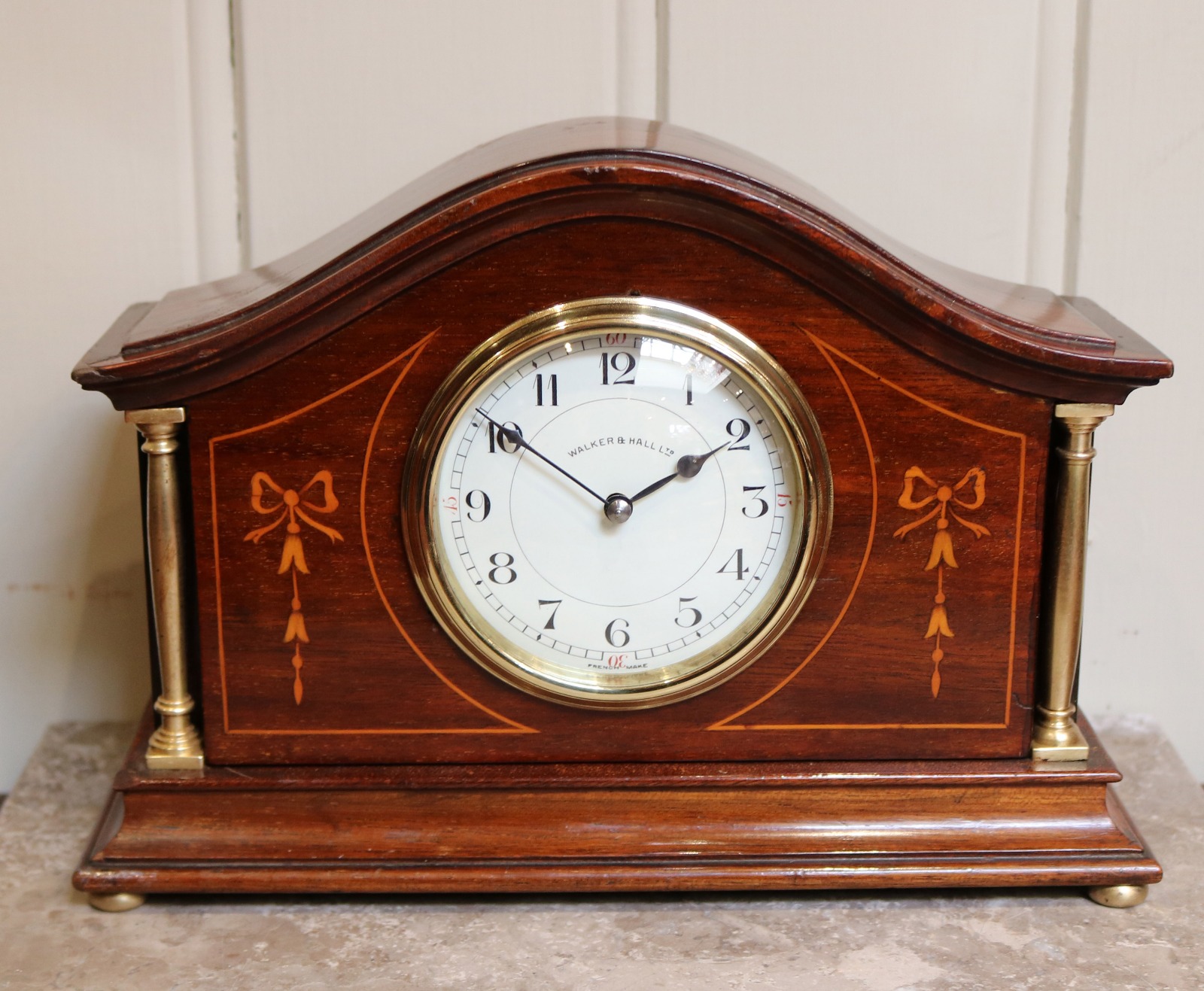 Edwardian Solid Mahogany & Inlay Mantel Clock c.1910 (1 of 1)