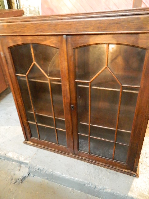 Edwardian Solid Oak Display Cabinet / Bureau Bookcase Top