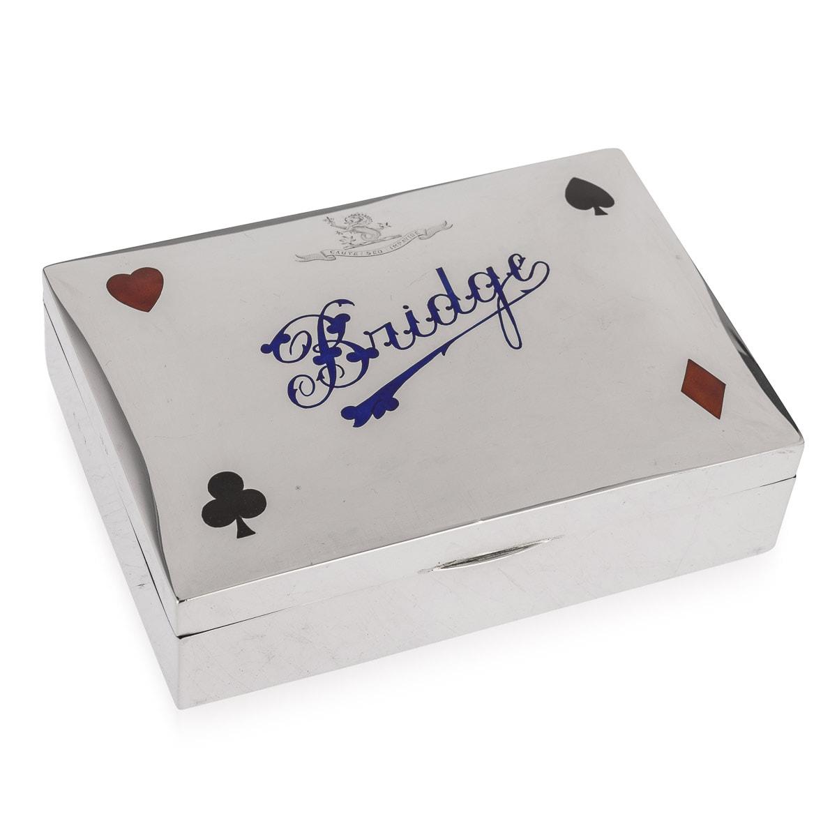 Edwardian Solid Silver & Enamel Bridge Game Box c.1908
