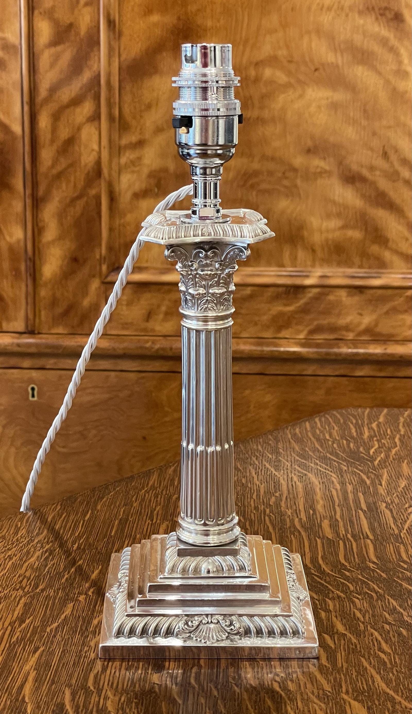 Edwardian Solid Silver Table Lamp, Sheffield 1906