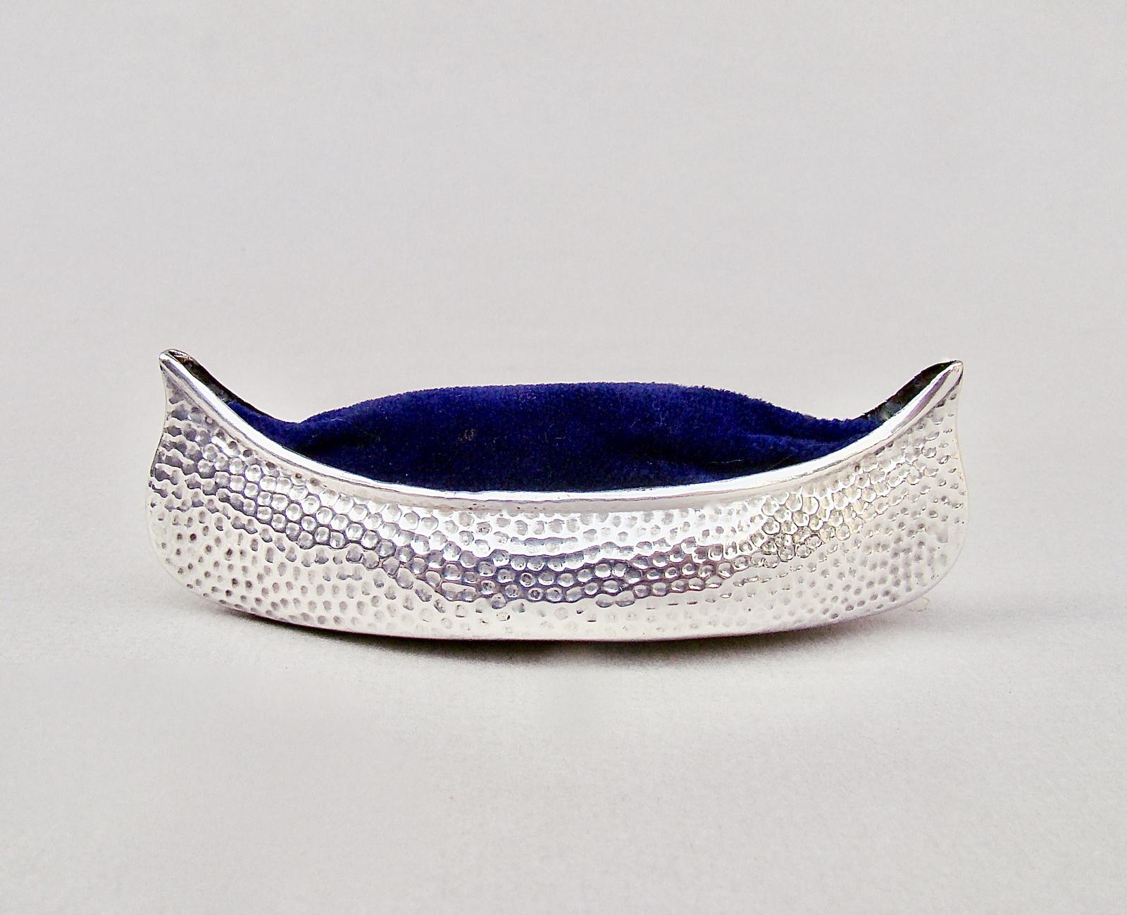 Edwardian Spot Hammered Silver "Canoe" Pin Cushion By Saunders & Shepherd , Birmingham 1905