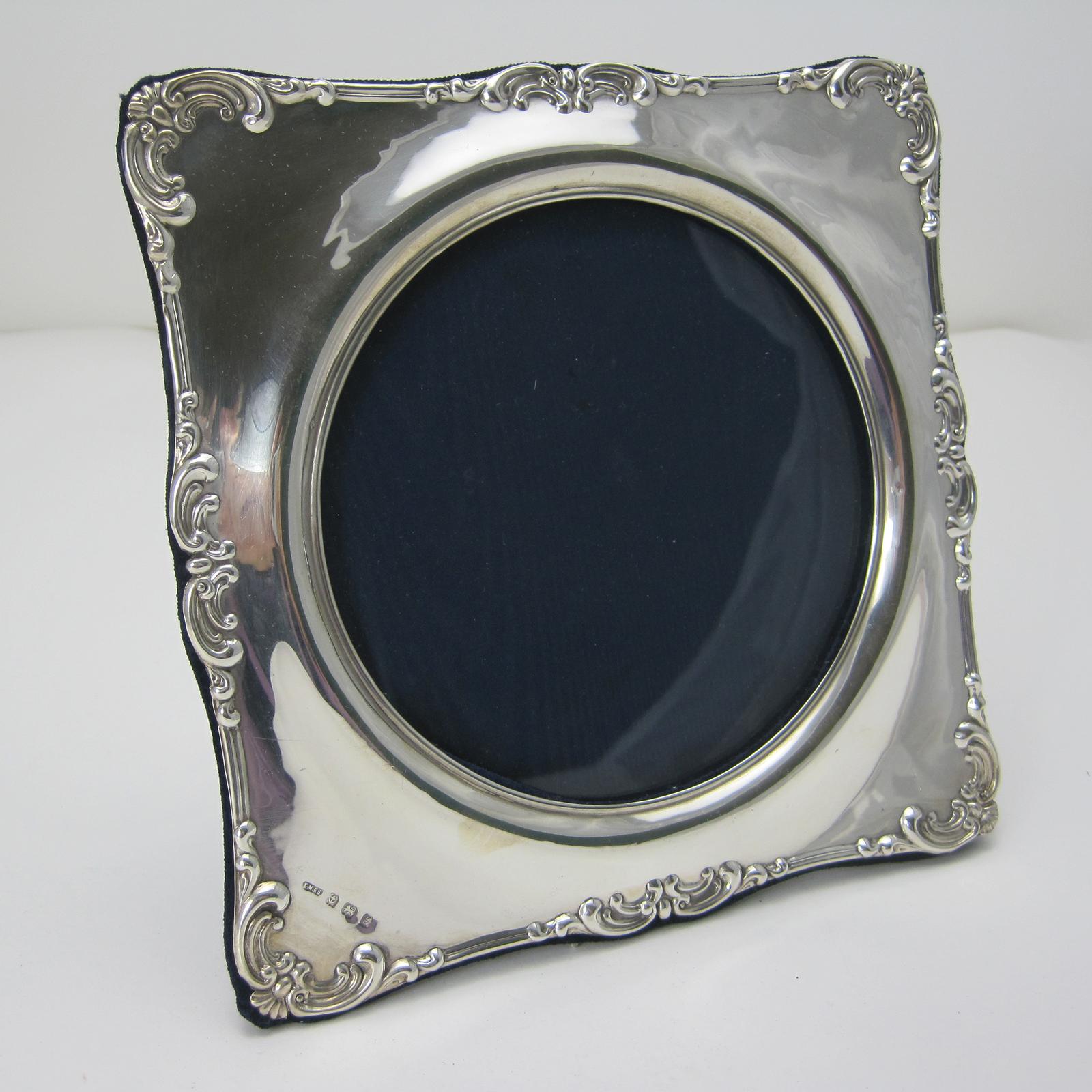 Edwardian Square Silver Photo Frame with Circular Window (1 of 6)