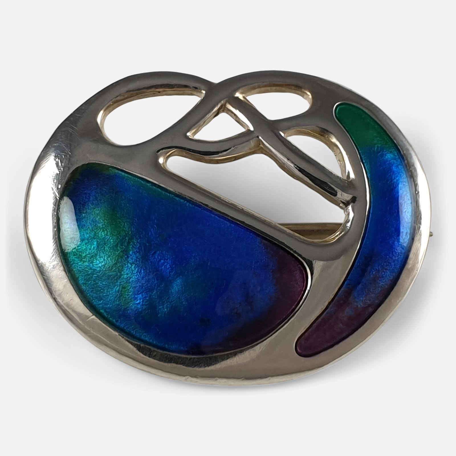 Edwardian Sterling Silver & Enamel Brooch Charles Horner 1908