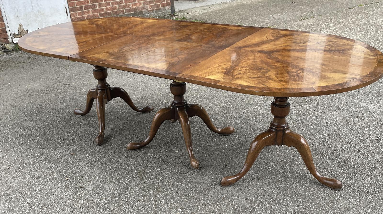 Edwardian Three Pillar Flame Mahogany 8 Seater Dining Table
