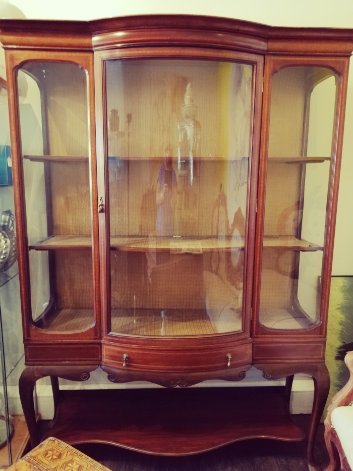 Edwardian Triple Fronted Display Cabinet with Convex Glass To the Centre