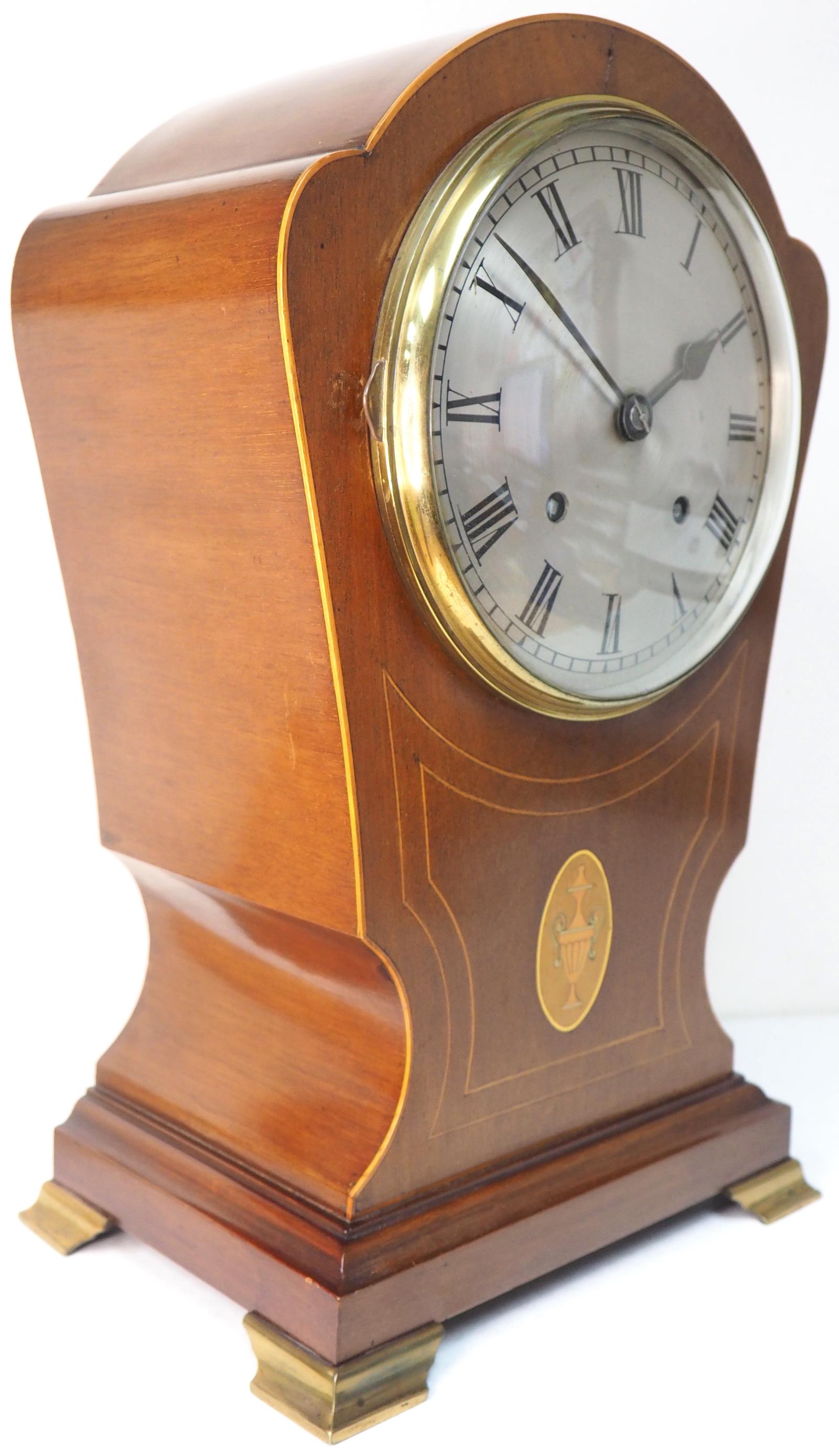 Edwardian Tulip shaped 8-Day Mantel Clock English Mahogany Inlaid Striking Mantle Clock Magnificent Size (1 of 11)