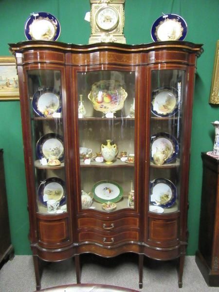 Edwardian Two Door Mahogany Inlaid Display China Cabinet