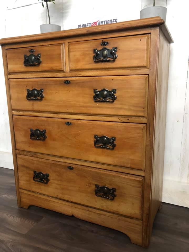 Edwardian Vll Satin Birch Chest of Drawers with Working Key