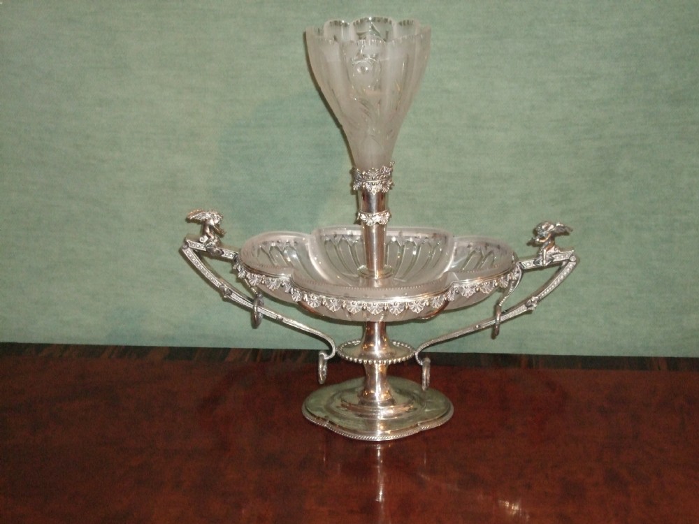Edwardian 'Walker & Hall' Silver Plated & Crystal Glass Table Centre