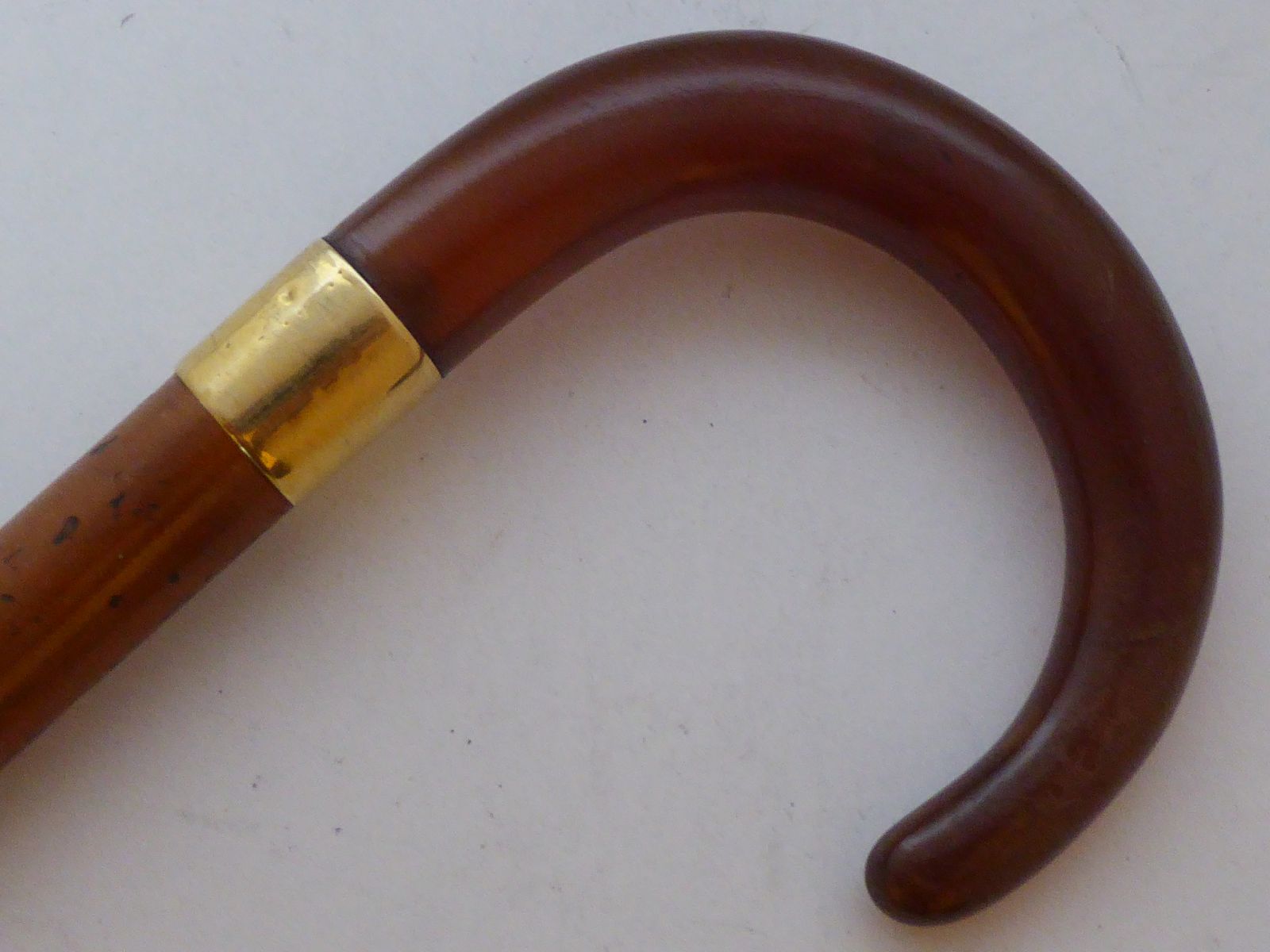Edwardian Walking Stick Cane Hallmarked 18 ct Gold Tortoise Shell Malacca Shaft