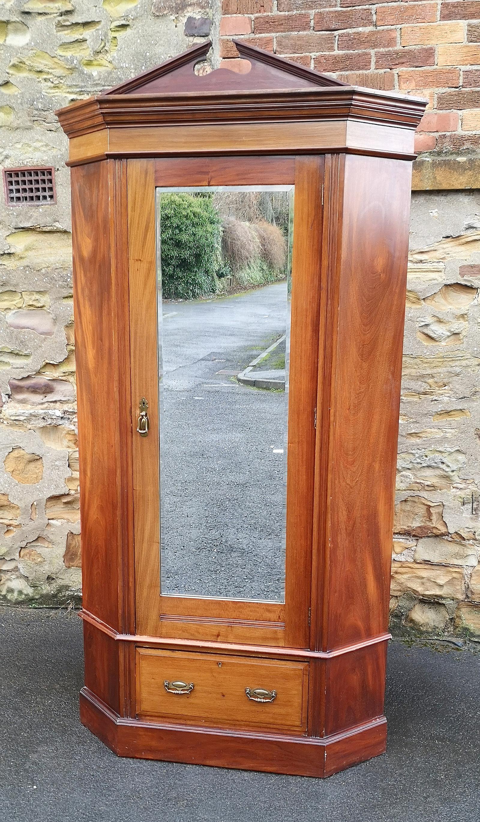 Edwardian Walnut Corner Mirror Door Wardrobe