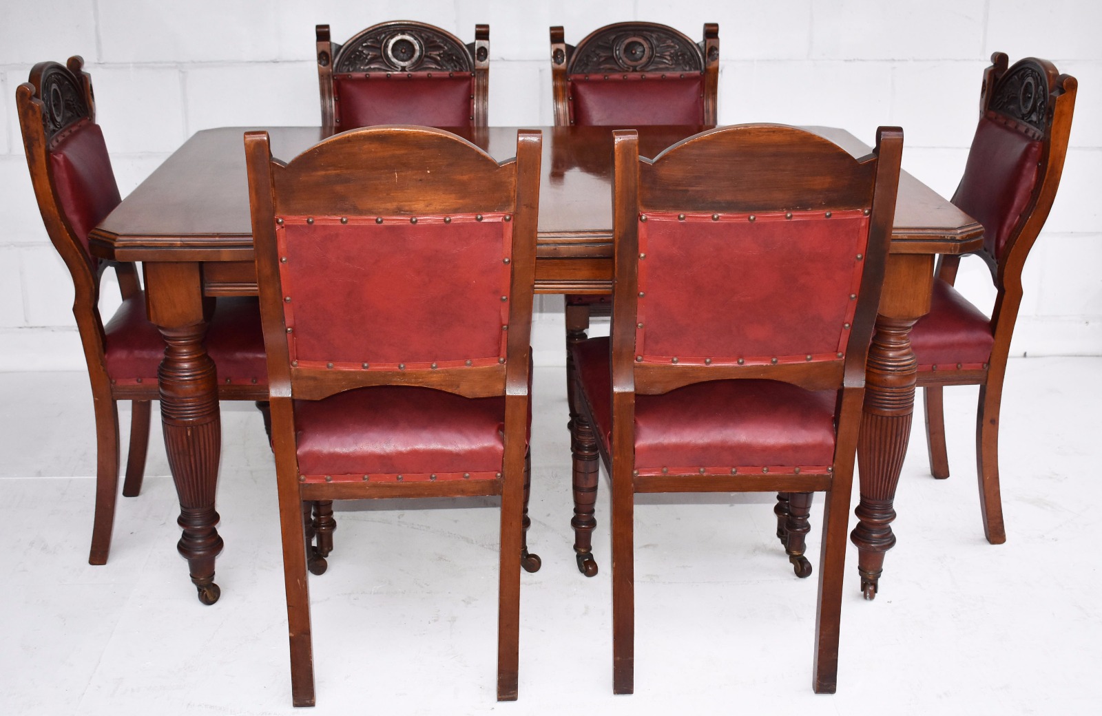 Edwardian Walnut Dining Table & 6 Dining Chairs