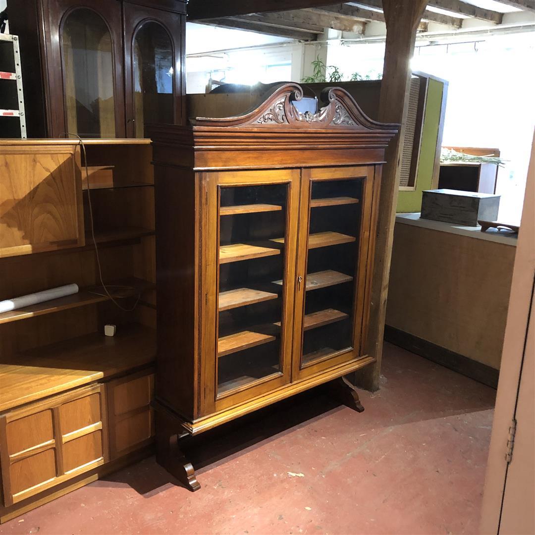 Edwardian Walnut Dresser Top Display Cabinet 1910s