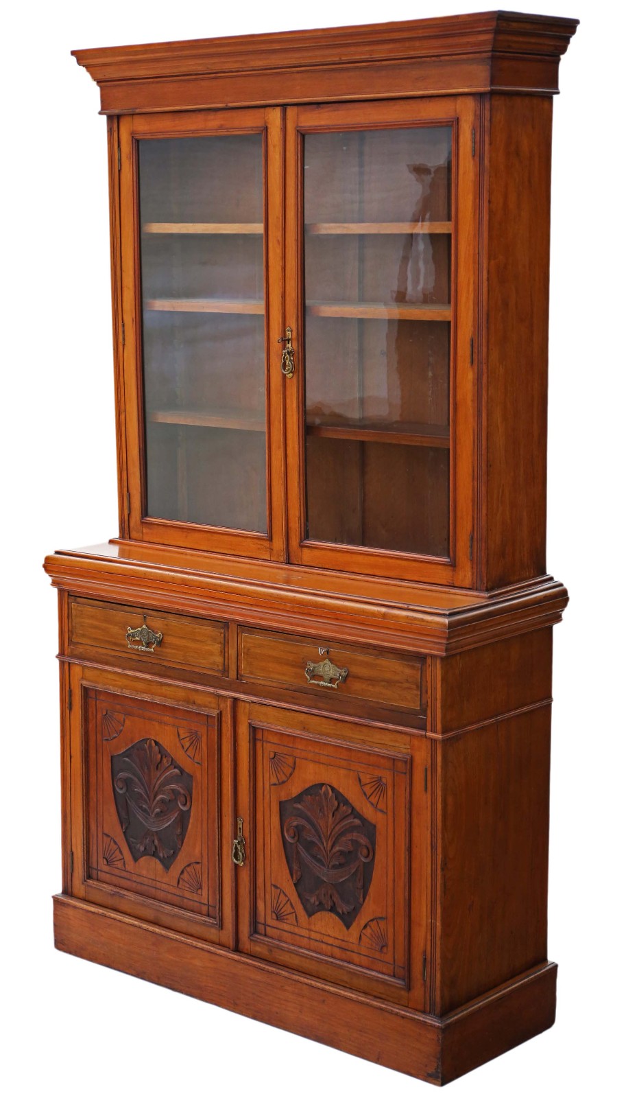 Edwardian Walnut Glazed Bookcase Display Cabinet