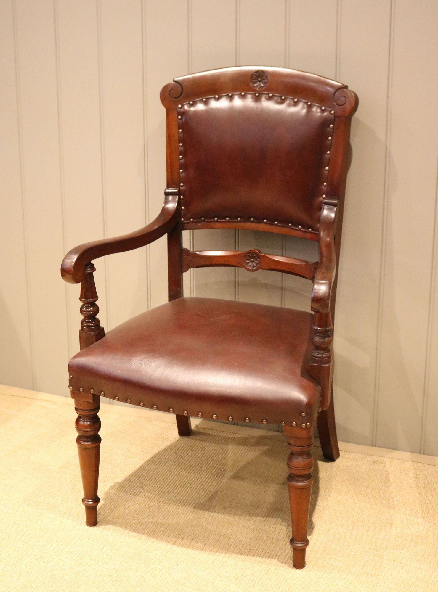 Edwardian Walnut & Leather Armchair (1 of 9)