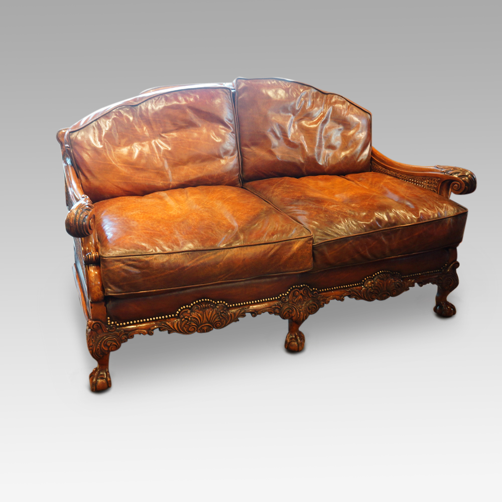 Edwardian Walnut & Leather Bergere Sofa (1 of 1)