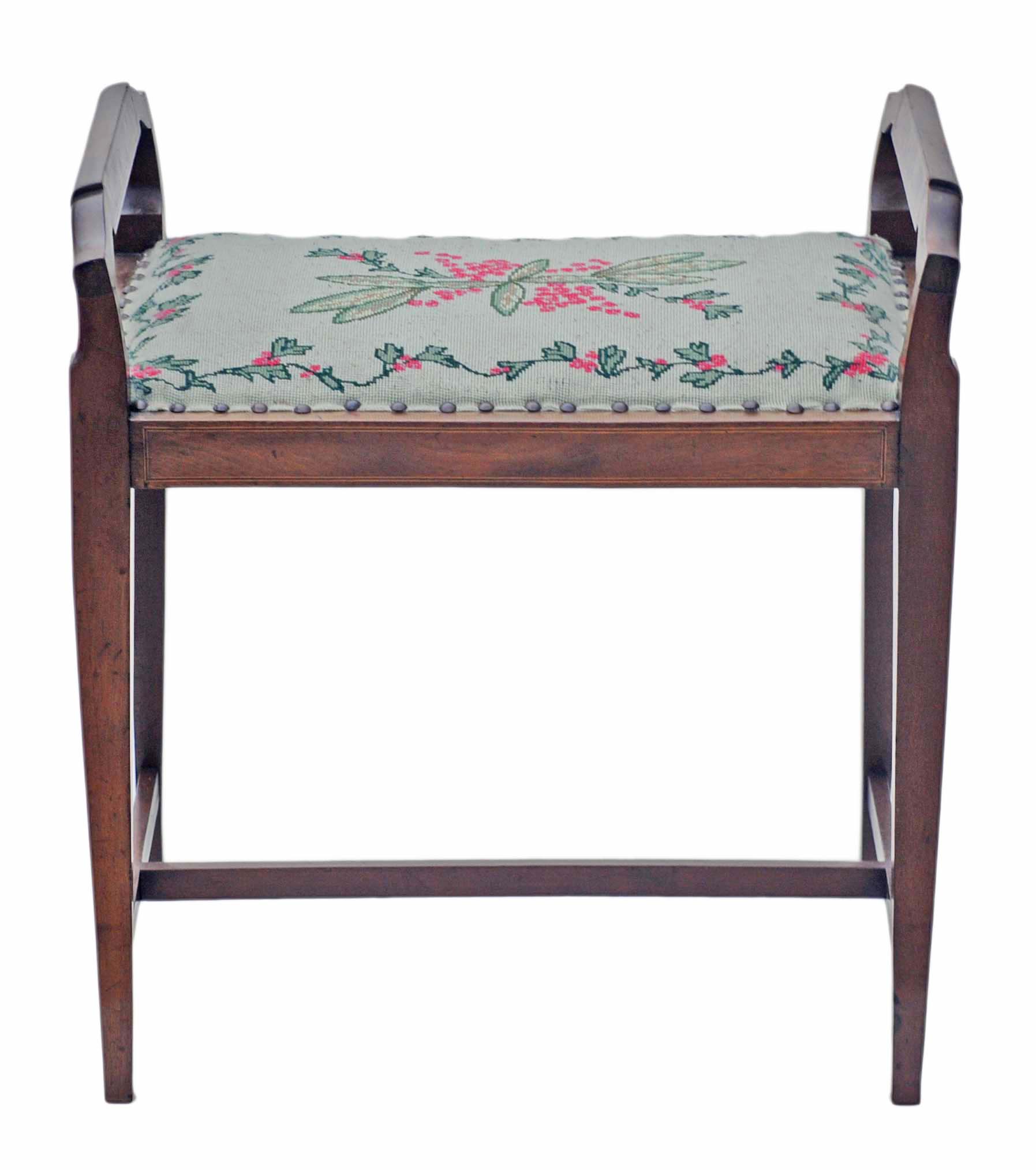 Edwardian Walnut Mahogany Dressing Table Stool / Piano Music Stool