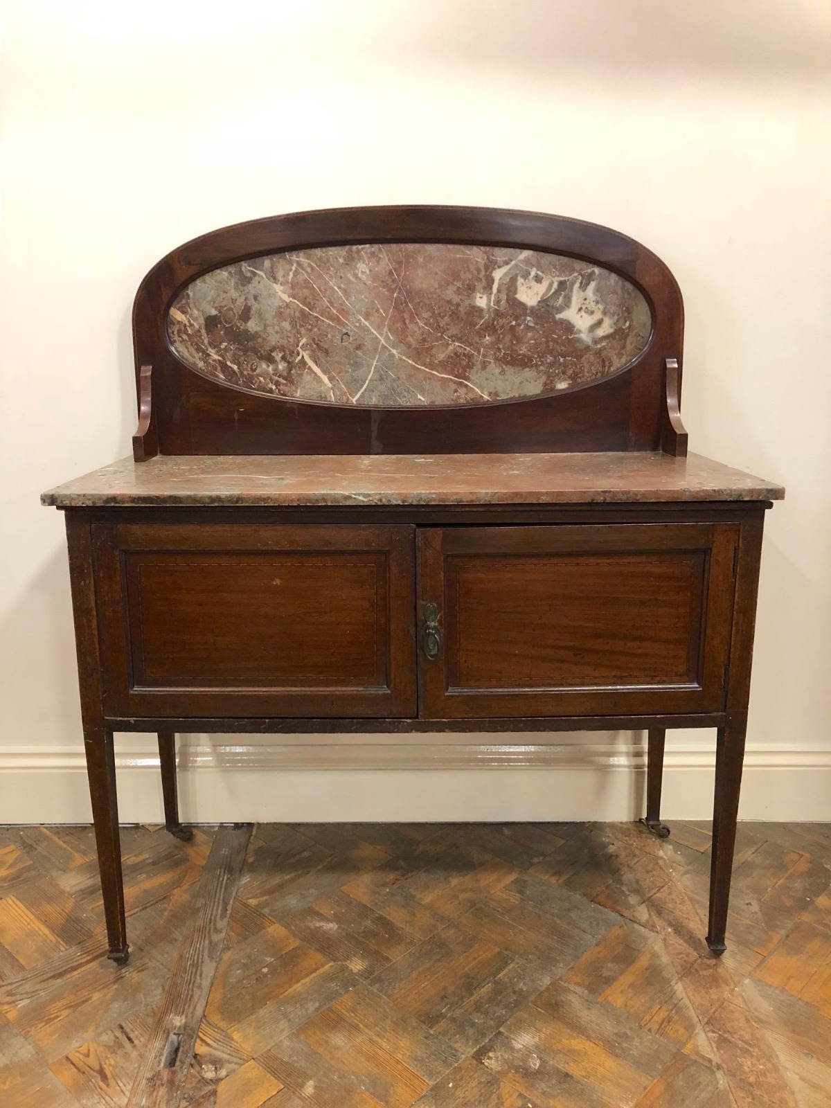 Edwardian Washstand Cupboard with Marble Top & Back (1 of 1)