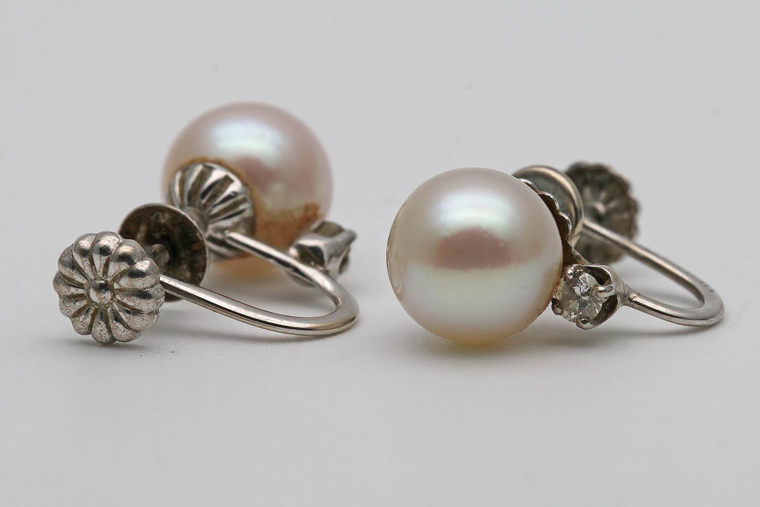 Edwardian White Gold Pearl & Diamond Earrings (1 of 2)
