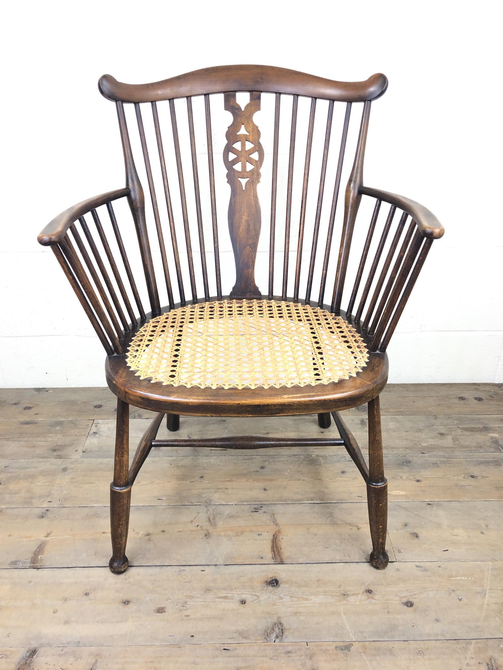 Edwardian Windsor Stick Back Armchair with Cane Seat (1 of 14)