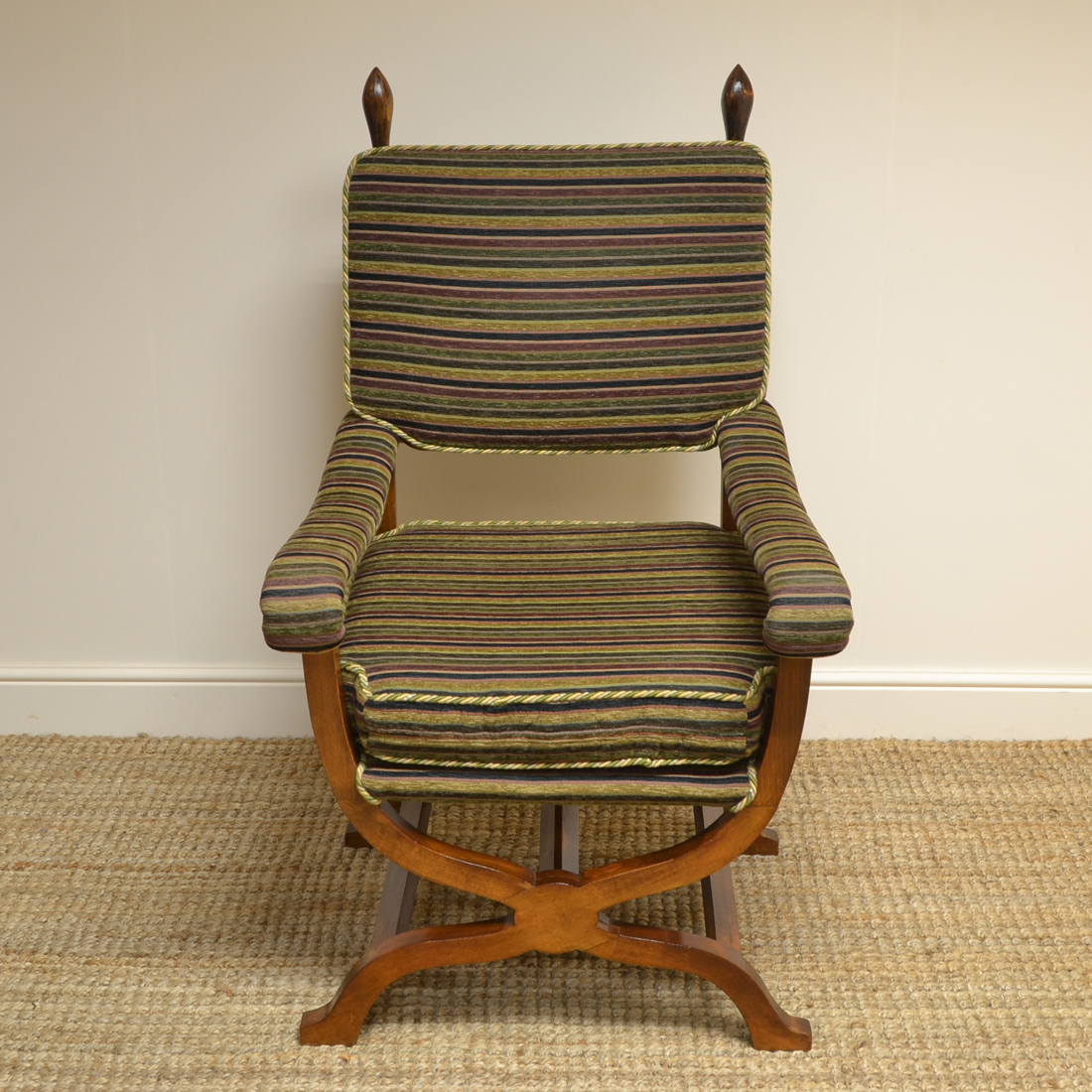 Edwardian X Framed Upholstered Antique Armchair