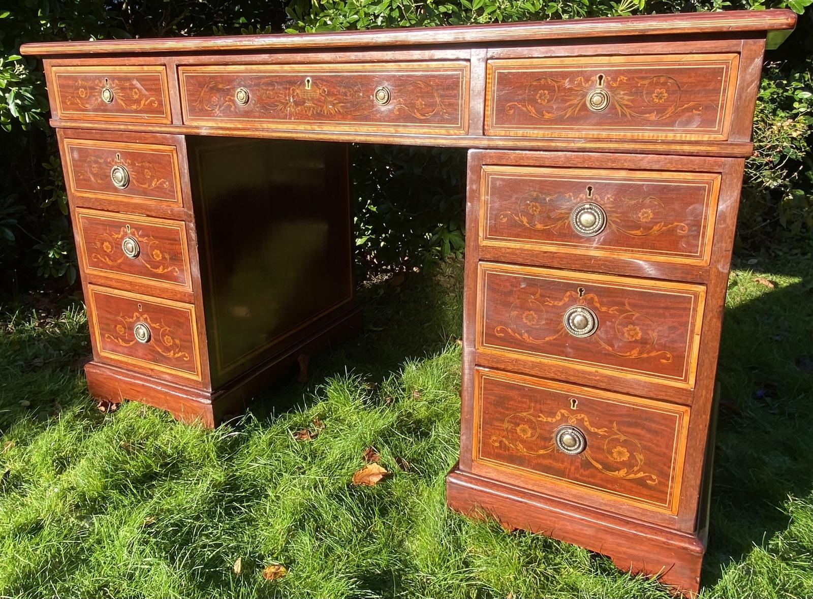 Edwards and Roberts Marquetry Inlaid Pedestal Desk (1 of 8)