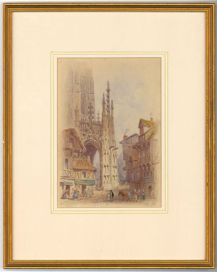 Edwin Thomas Dolby - Fine 1894 Watercolour, Rouen Street Scene