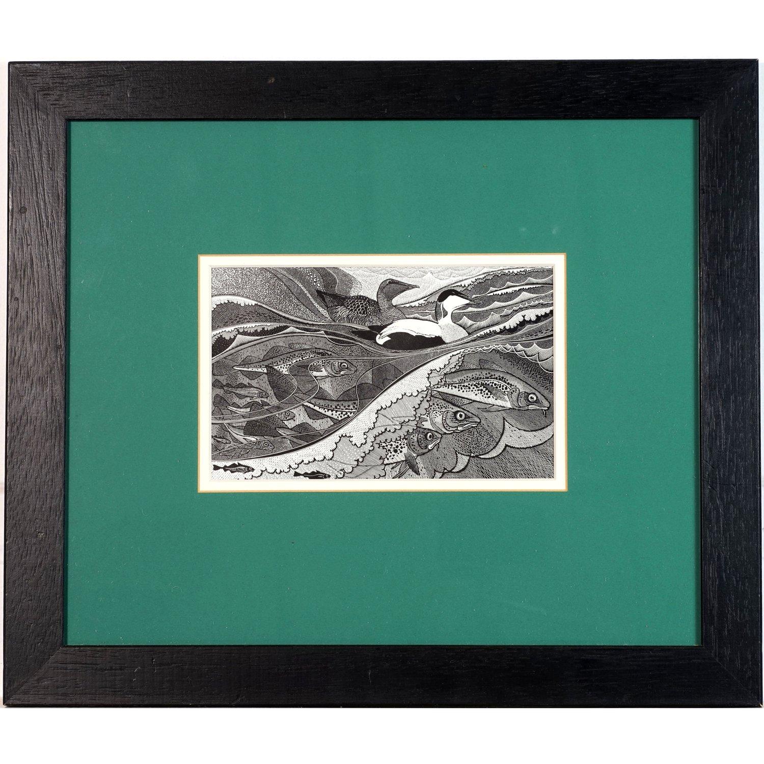 Eider and Cod, Wood Engraving by Colin See-paynton