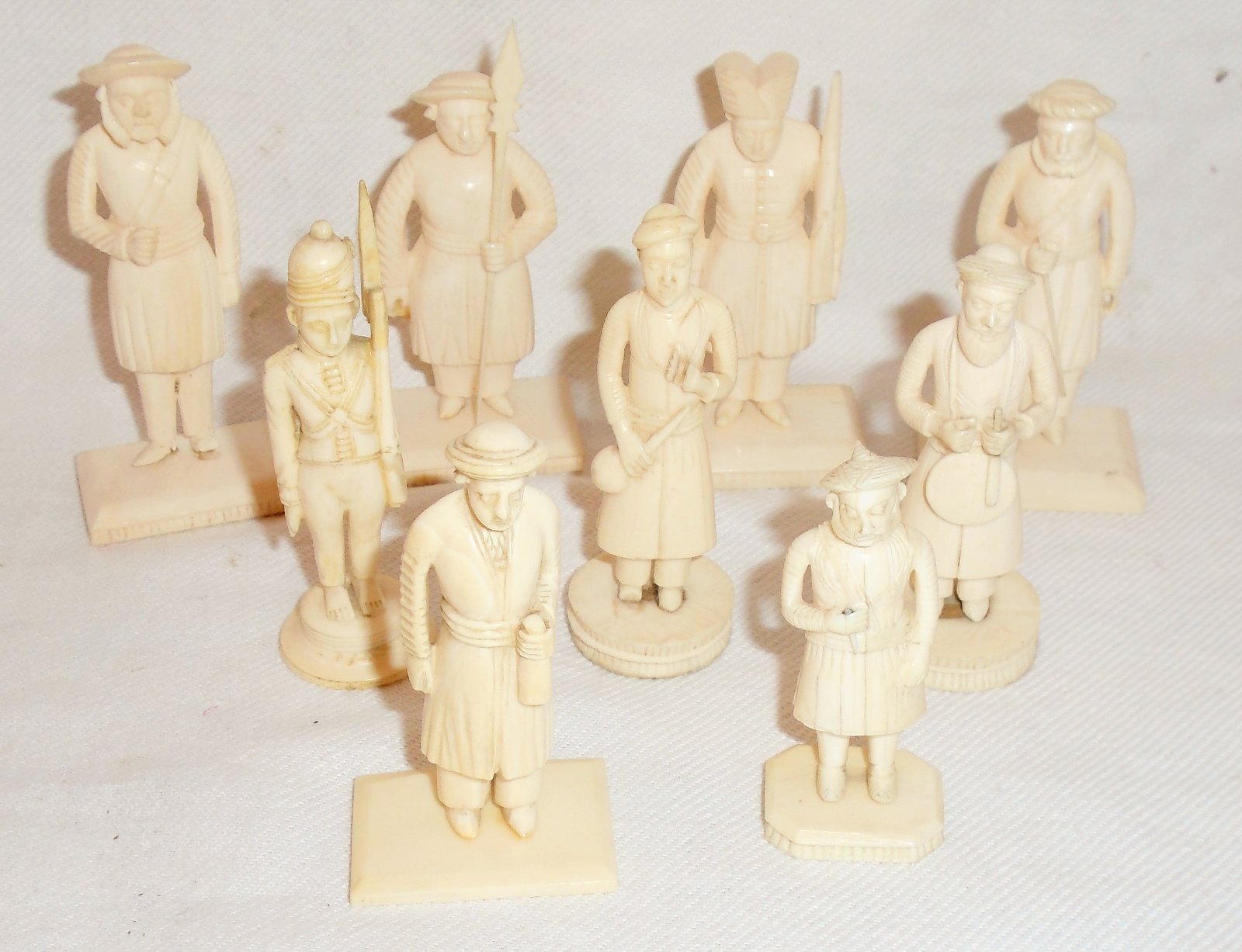 Eight Carved Indian Ivory Bengal Figures of Soldiers & Musicians