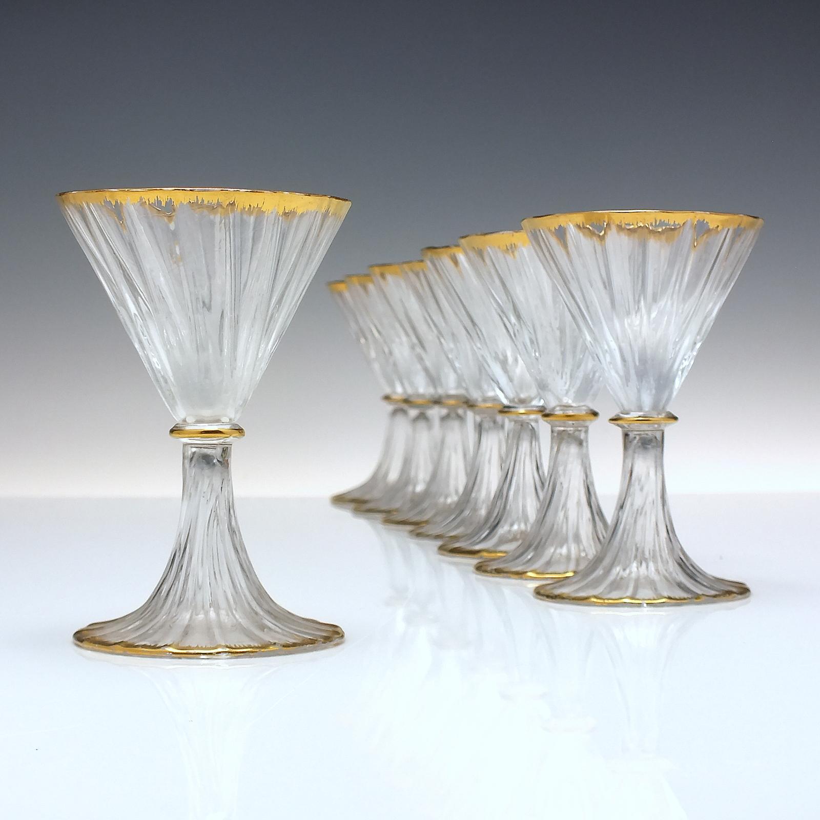 Eight French Daum Nancy Art Nouveau Cocktail Glasses C1900