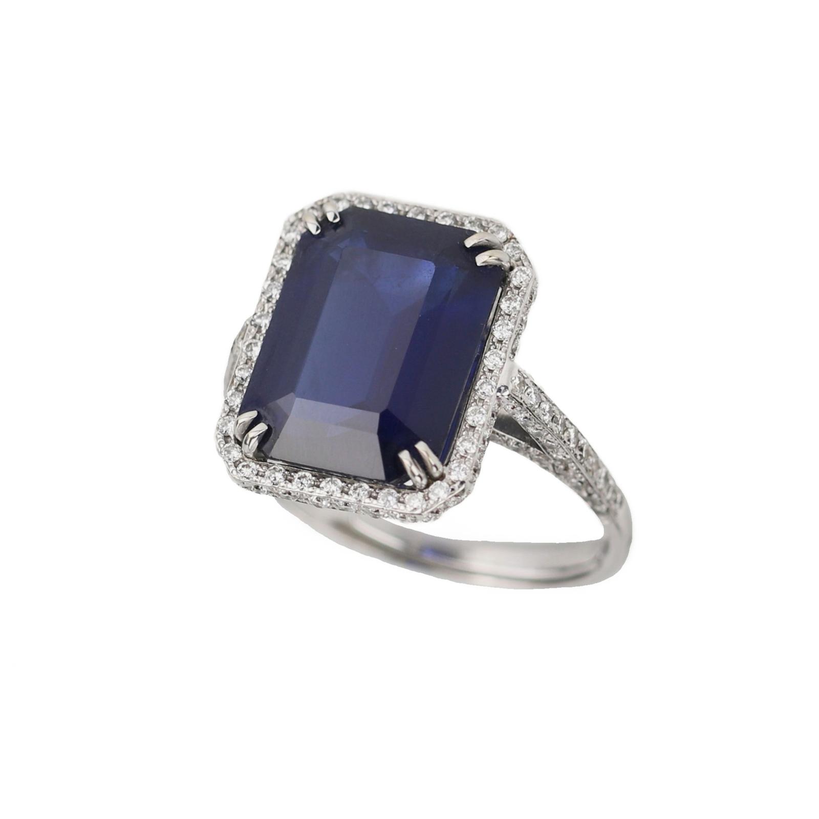Elegant 18K Gold Ring with Diamonds and Natural Sapphire 7.76 carats.