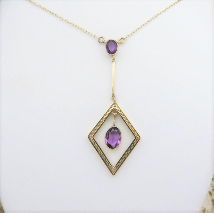 Elegant Antique Amethyst Set Drop Necklace Marked 9ct
